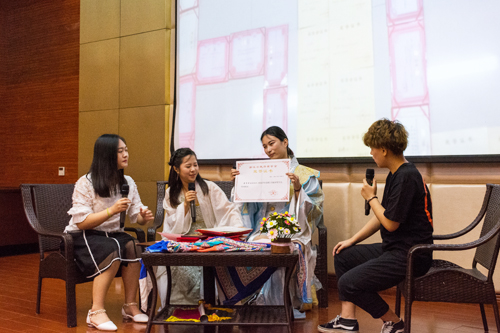 服装艺术设计系9幢610寝室,曾荣获绍兴市首届寝室文化节“最美寝室”,充分发挥自身专业知识“废纸再用”建立生活剪影墙,优秀作业打造精彩寝室文化;人文系5幢304寝室以寝室座谈会的形式,结合书法、朗诵的现场展演,展现寝室成员“文能称霸 武能称雄”;来自经济管理系的2幢202寝室别出心裁地为我们导演了一部精彩纷呈的新闻播报《经管大事件》,将寝室学习和打闹的日常类比为大热剧《欢乐颂》中五美的日常,让人倍感亲切;建筑工程系11幢545寝室以讲课答辩的形式,介绍着她们竞赛征程中引以为傲的滑翔机模型,结构模型以及数学模型;更有医药与健康系9幢314寝室介绍药囊成分,进行药类鉴别实验,实地量血压来告诉我们何为“学以致用”;外国语系8幢527寝室通过面试与模拟志愿活动的方式向观众们展示了她们流利的英文和作为“对外志愿者”的基本礼仪;信息工程系8幢412寝室以一个制作精良的动画视频短片抓住了观众眼球,并展示了成员们独立制作完成的“慧学APP”,彰显着“优秀学生干部”的榜样引领;如果有一个寝室能够让你热泪盈眶,那一定是来自经济管理系的1幢617寝室,2014-2016年,累计募捐冬衣800公斤,多次参加山区支教,他们说,“支教时,陪伴孩子放学回家的路,走一次,便少一次”,可谓是“无志愿,不青春”;来自机械与电子系的11幢549寝室是一个大三、大一混合寝室,是以“2+2=1”的融合,日记体的形式将寝室成长点滴展露,学姐用自身优秀学生干部的经历鼓励学妹勇敢去追寻梦想;服装与艺术设计系9幢652寝室在本次展示会上承办了一场《文明杯》新锐设计师发布会,寝室成员分别担任主持人,模特,设计师,扎实的专业技能和精美的服装设计让观众大开眼界。