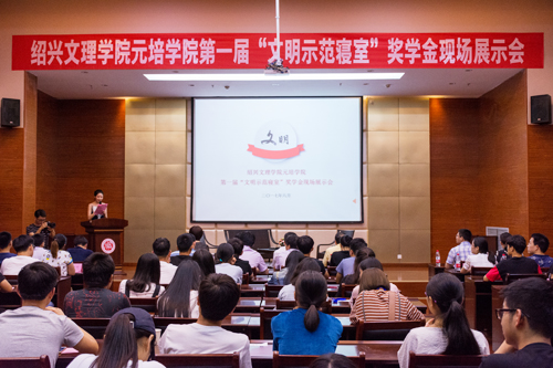 为进一步深化文明寝室创建长效机制,强化书院育人功能,深入开展大学生文明修身活动,6月9日晚,我院第一届“文明示范寝室”奖学金现场展示会在图书馆828会议室隆重举行。学院党委副书记宣海江,中国农业银行绍兴越中支行行长张月信,吾展书院院长钱贤民,吾育书院院长俞爱月以及相关职能部门负责人、各系学生工作(副)书记、辅导员和学生代表共一百五十余人参加活动。