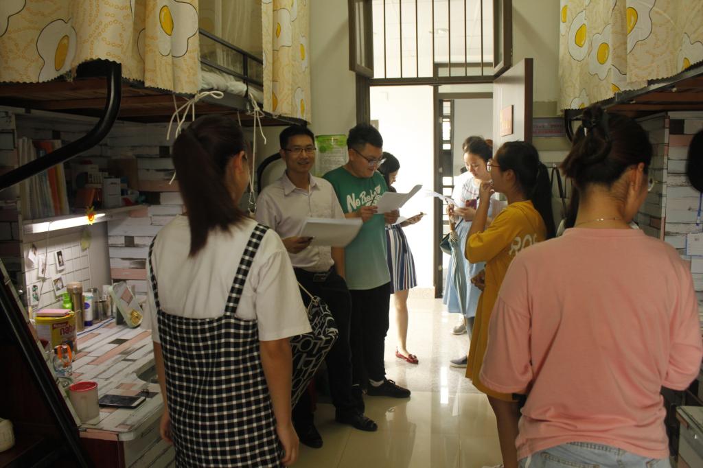 为进一步深化文明寝室创建长效机制,强化书院育人功能,深入开展大学生文明修身活动,6月6日中午,元培学院第二届“文明示范寝室”现场评审环节正式展开,学工部副部长周卫江、吾育书院管理办公室主任姚慧娜、吾展书院马敏敏以及各分院相关辅导员担任此次现场评审环节的评委。