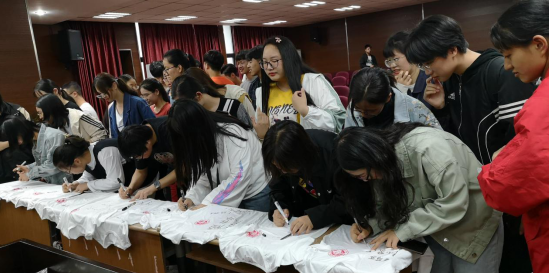 为了更好的宣传诚信理念、法治观念在生活学习中的重要作用,号召更多的同学参与法治活动,法学会特别定制了印有“吾育诚信之心,同铸法治之魂”的T恤衫,并在活动现场呼吁与会同学们参加签名活动。活动吸引了众多同学的围观,现场气氛十分热闹。签名活动的举办展示了同学们参与法治宣传活动的热情,对传播“吾育诚信之心,共铸法治之魂”的法制观念起到了重要作用,为诚信进校园活动的开展奠定了结实的基础。