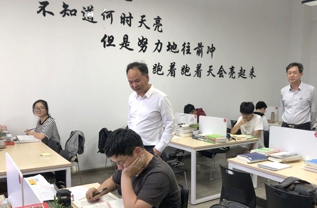 在听取学工部负责人就学院及各分院近三年学生考研情况总结汇报和建筑工程分院相关人员对分院考研工作的交流发言后,石旭明表示,学院一直高度重视做好考研工作,近年来,学院学生考研录取率稳步提升,但差异化和多元化的学生生源给学院考研工作带来了新的挑战,考研工作仍然面临着严峻的形势。他强调,各分院要以考研工作指南为抓手,积极落实各项工作要求,推动学院考研升学率逐年稳步提升,并从四个方面为考研学生提供切实有效服务:一要早动员。要确保已报考的学生积极参加考试,同时又要着眼于长远,从新生抓起,做到始业教育考研动员全覆盖;二要优环境。要为学生营造良好的考研环境,加强朋辈示范引导,配备好指导教师,做好考研学生的心理团辅工作;三要强合作。要选择优秀的考研辅导机构,以专业化的团队提供有延续性的优质考研服务;四要重激励。要对考研学生和优秀指导教师进行表彰,以相关配套政策激励学生更加有信心地参加考研。会后,石旭明一行还实地参观了建筑工程分院考研自习室,并就各分院考研自习室环境布置等方面作了指导。