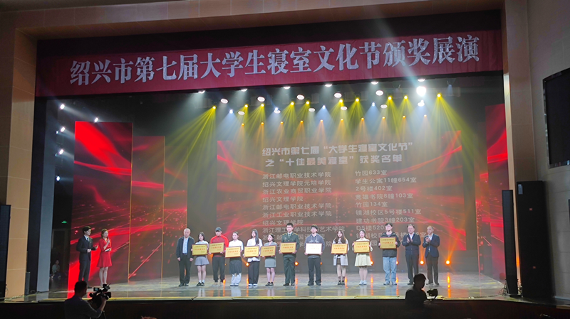 4月12日,由绍兴市委宣传部、市教育局、市新闻传媒中心主办的绍兴市第七届“大学生寝室文化节”颁奖展演活动在市文化中心举行。经过院内初赛、市级复赛等层层选拔,我院选送的学生公寓11幢654寝室获得“市十佳最美寝室”称号,学生公寓2幢228寝室、5幢317寝室、9幢528寝室、12幢326寝室获得“市最美寝室”称号;选送节目《续唱“大山女儿”的青春之歌》获得子活动“喜迎二十大 ·我想对党说” 演讲大赛二等奖,节目《传统酒业吐新芽,黄酒文化行天下》获得子活动“越来越好·青年说”宣讲大赛二等奖,节目《山阴之恋》获得子活动“我为古城代言”微视频大赛二等奖,节目《我们的直播间》获得子活动才艺展示大赛二等奖。