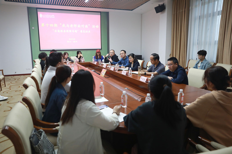 为共同营造更好的校园生活环境,进一步提升后勤服务质量,5月24日晚,学院第十四期“我与老师面对面”活动在国际文化交流中心203会议室举行。学院副院长沈玮、周思红出席活动,基建后勤处、资产经营公司相关负责人及14位学生代表参加活动,党委学工部负责人主持会议。