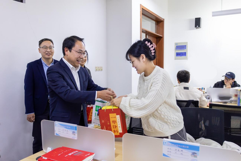 2024年全国硕士研究生招生考试在即,12月14日上午,学院党委书记梁瑜,院长沈红卫,党委副书记石旭明,相关职能部门负责人,分院领导、辅导员走进考研自习室,为正在奋战考研的大四学子送上考前祝福。