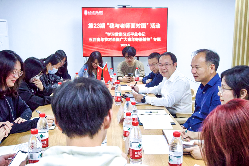 5月13日,学院举行学习宣传贯彻习近平总书记五四青年节对全国广大青年寄语精神座谈会暨第二十三期“我与老师面对面”活动。学院党委书记梁瑜出席座谈会。相关职能部门负责人、各分院团员代表参加座谈。座谈会由学院党委副书记石旭明主持。