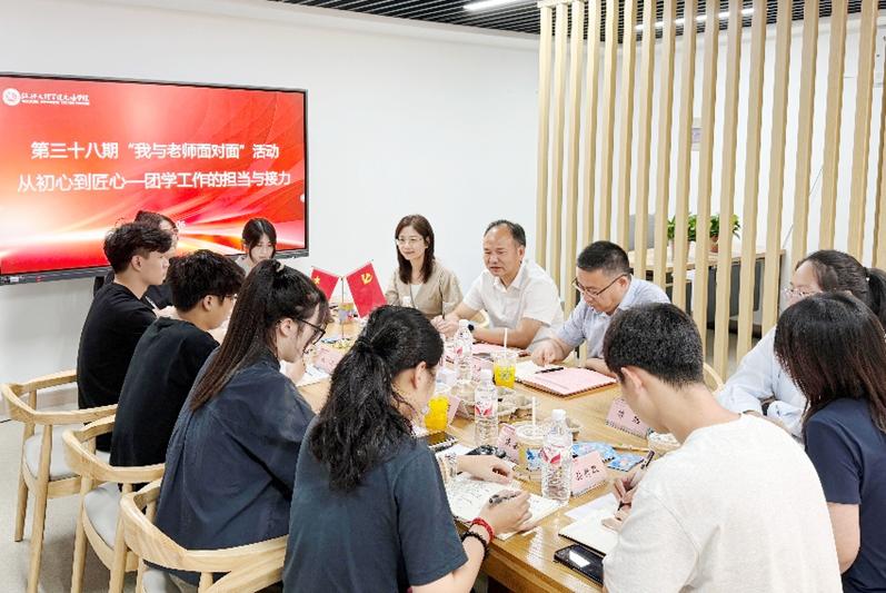 6月5日晚,“从初心到匠心——团学工作的担当与接力”第三十八期“我与老师面对面”活动在南区“一站式”学生社区服务中心举行。学院党委副书记石旭明、相关职能部门负责人,第十七、十八、十九届院学生会主席团成员代表同聚一堂,共话团学工作传承与发展。