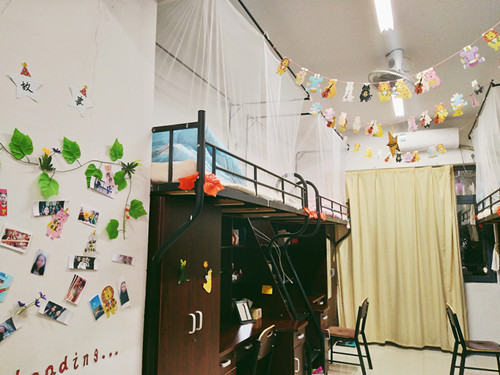 寝室是大学生生活、学习的重要场所,也是学校精神文明建设和立德育人的重要窗口。为进一步引导学生把寝室建成“整洁、文雅、温馨、和谐”的学生之家。近日,建筑工程分院按照学院2017年文明寝室建设系列活动工作要求积极宣传发动,组织举办分院“最美寝室”系列活动,进一步引导广大学生在活动中提高,在体验中成长,在参与中收获,强化巩固学生寝室文化育人品牌。 本次活动分“最美寝室”大赛、寝室美化大赛和内务整理大赛三个部分。在活动中,每间寝室均一尘不染,整齐归置,精心布置,令人赏心悦目。有的寝室在墙上用画笔描绘仙人掌、熊本熊、向日葵等各色图案,栩栩如生,为寝室装点出别样美感;有的寝室在照片墙上粘贴一张张温馨留影,是装饰,更是见证大学四年生活的最美好记忆;有的寝室在留言板上写下一句句亲切的话语,那是室友间浓浓的情谊;“最温馨”、“最学霸”、“最活力”、“最文艺”……一间间别具风格又青春整洁的寝室折射出当代大学生文明积极的良好风貌,为各分院进一步加强文明寝室建设发挥良好榜样示范作用。