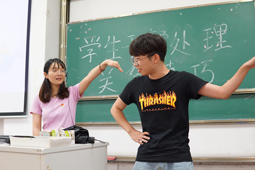 分院心理辅导员通过4个小游戏使学生干部在欢声笑语中学习如何提升新生班级凝聚力。“我是一只大茶壶”破冰游戏缓解了大家的游戏压力;“几条腿”加深同学们肢体接触;“同化与异化”有助于提升班级凝聚力和团队意识;“优点轰炸”增强同学们自信心。