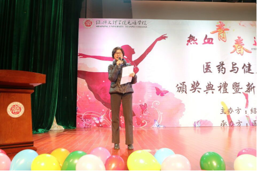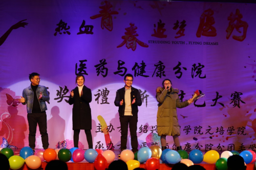 12月11日晚,医药与健康分院“热血青春,追梦医药”2018年颁奖典礼暨新生才艺大赛在国际文化交流中心如期举行。学院纪委书记朱小芳老师、分院院长周瑾老师、学工部部长陶亦伟老师、分院党总支书记金超老师、分院综合办副主任张益勋老师、分院全体教师、各优秀学生代表及2018级新生一同参加。