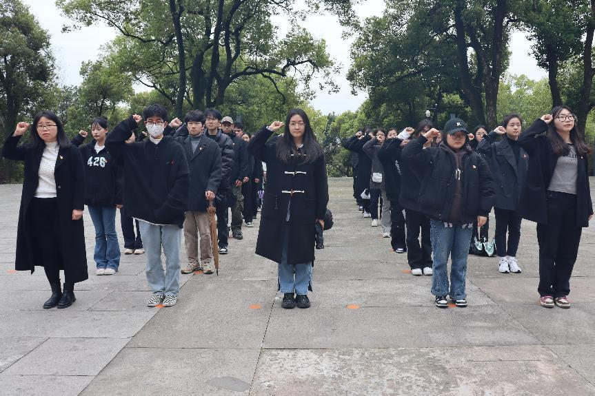 巍巍青山埋忠骨,朵朵白花奠英灵。为深入学习贯彻党的二十大精神,感悟习近平总书记的英烈情怀、家国情怀,大力弘扬英烈的崇高品质和革命精神,清明节前夕,纺织服装与艺术设计分院党员师生前往府山烈士陵园扫墓,学习先烈精神,传承红色基因,用党的光荣传统和优良作风坚定信念、凝聚力量。