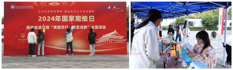 12月4日,国家宪法日当天,梁柏台法学院在梦想广场举办“宪行盛景,园趣华章”主题游园会,吸引广大学子参与,掀起一股学习宪法知识热潮。