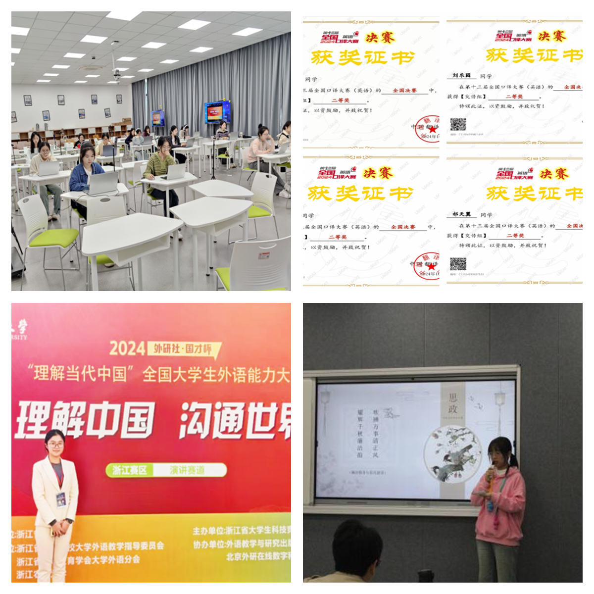 创新学术导师制,以学生为主体,孵化学术人才,一名导师与一位或多位学生建立一对一或一对多学生科研、学科竞赛、专业学习规划、创新创业等指导关系,以提供个性化学术指导和研创支持。学子在全国口译大赛、浙江省大学生英语竞赛、浙江省摄影竞赛中收获佳绩。