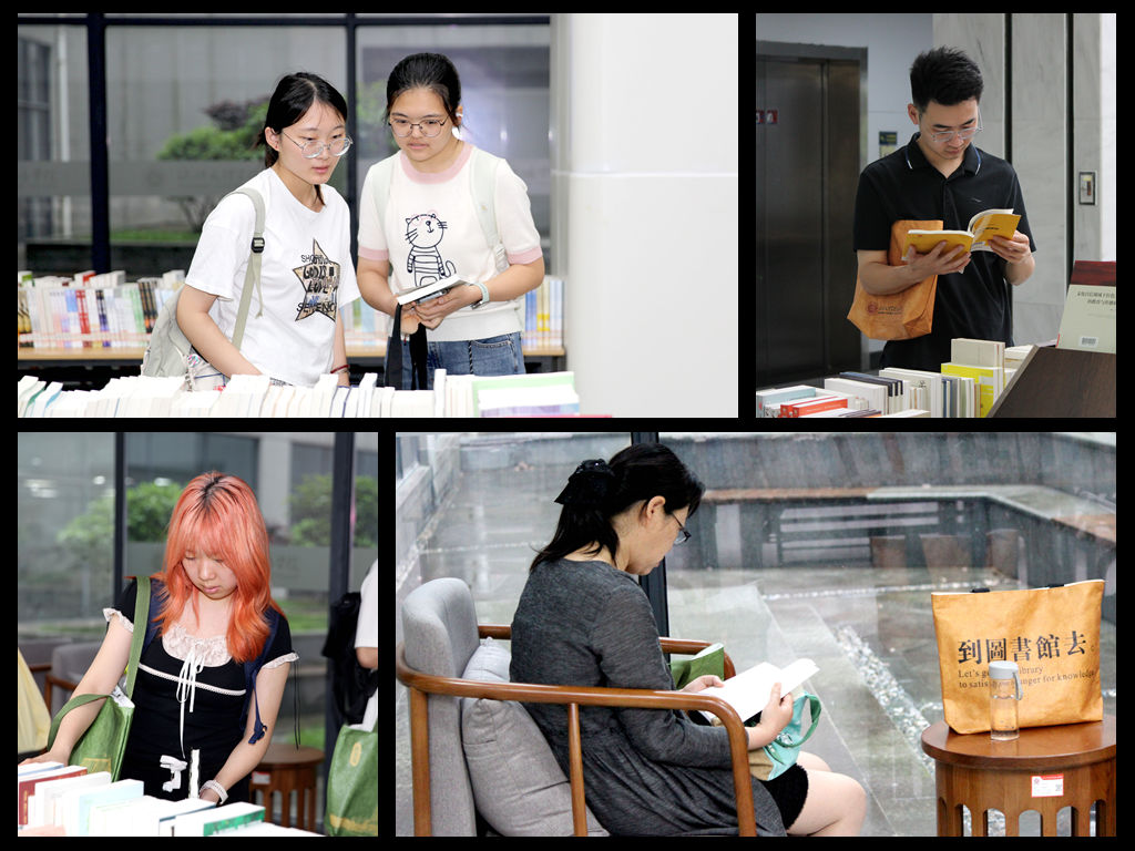 活动现场,手持5本图书高举战利品的学生正打卡留念。“原本计划借2本,但看到这个帆布袋瞬间燃起斗志。”法学院的王同学说道,“这个书袋不仅是战利品,更是督促我们阅读的‘军令状’”。在借阅区,还有读者自发形成“书单交流会”,从社科经典到科幻小说,现场碰撞出无数阅读火花。