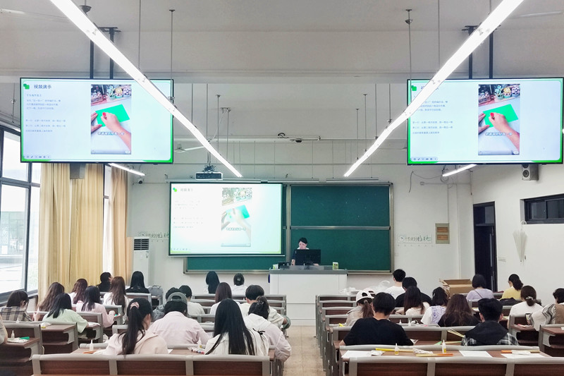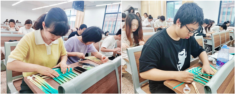 活动伊始,主讲老师以古扇为引,娓娓道来竹编技艺的悠久历史,并巧妙融入“却扇拒贿:羊续悬鱼留清名”的廉洁典故,将“竹之挺拔”与“人之高洁”自然联结。随着“挑二压二”技法的现场演示,纤细的竹丝在老师指尖化作经纬分明的网格,台下的师生们跟随比划,在竹丝交错中触摸传统工艺的温度与廉洁文化的厚重。